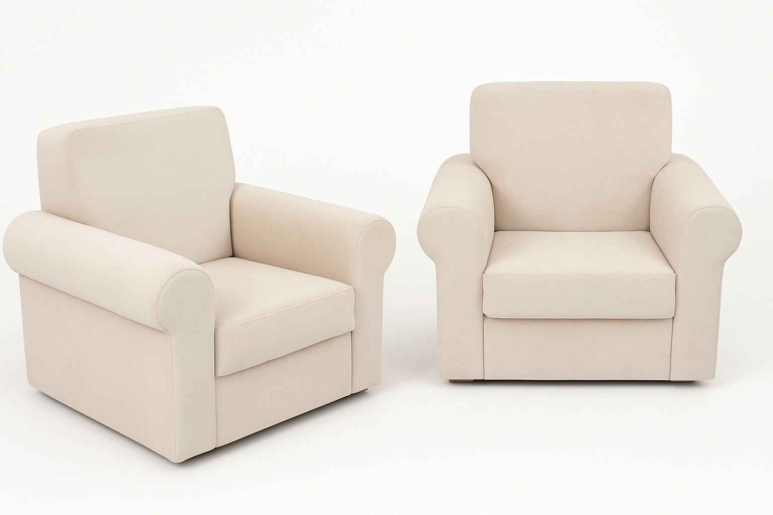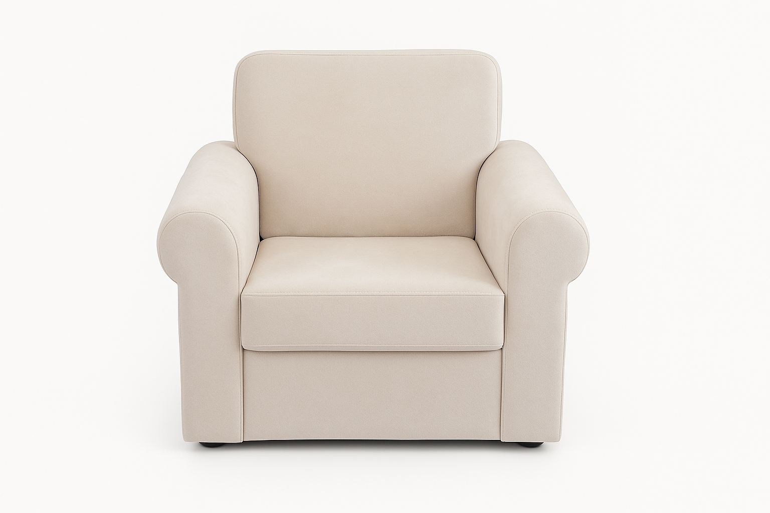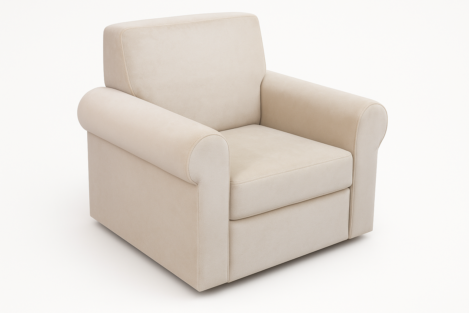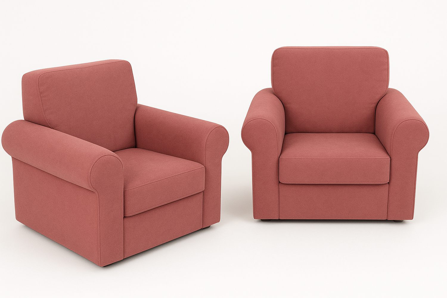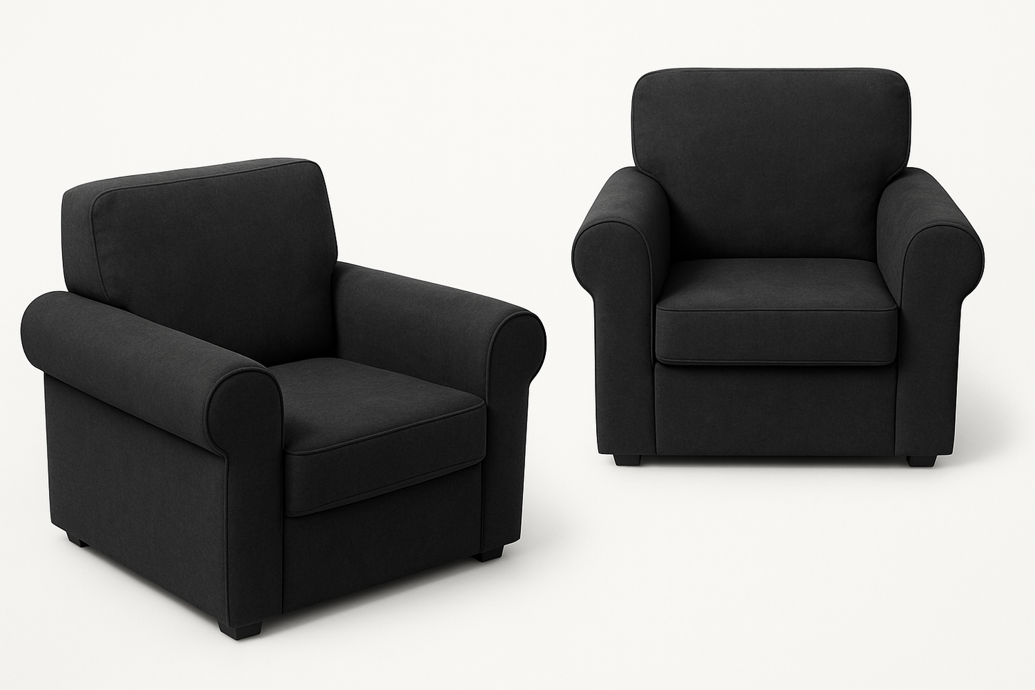 Fotel o klasycznej bryle z zaokrąglonymi podłokietnikami - prosty, solidny, łatwy do wstawienia w większość wnętrz.