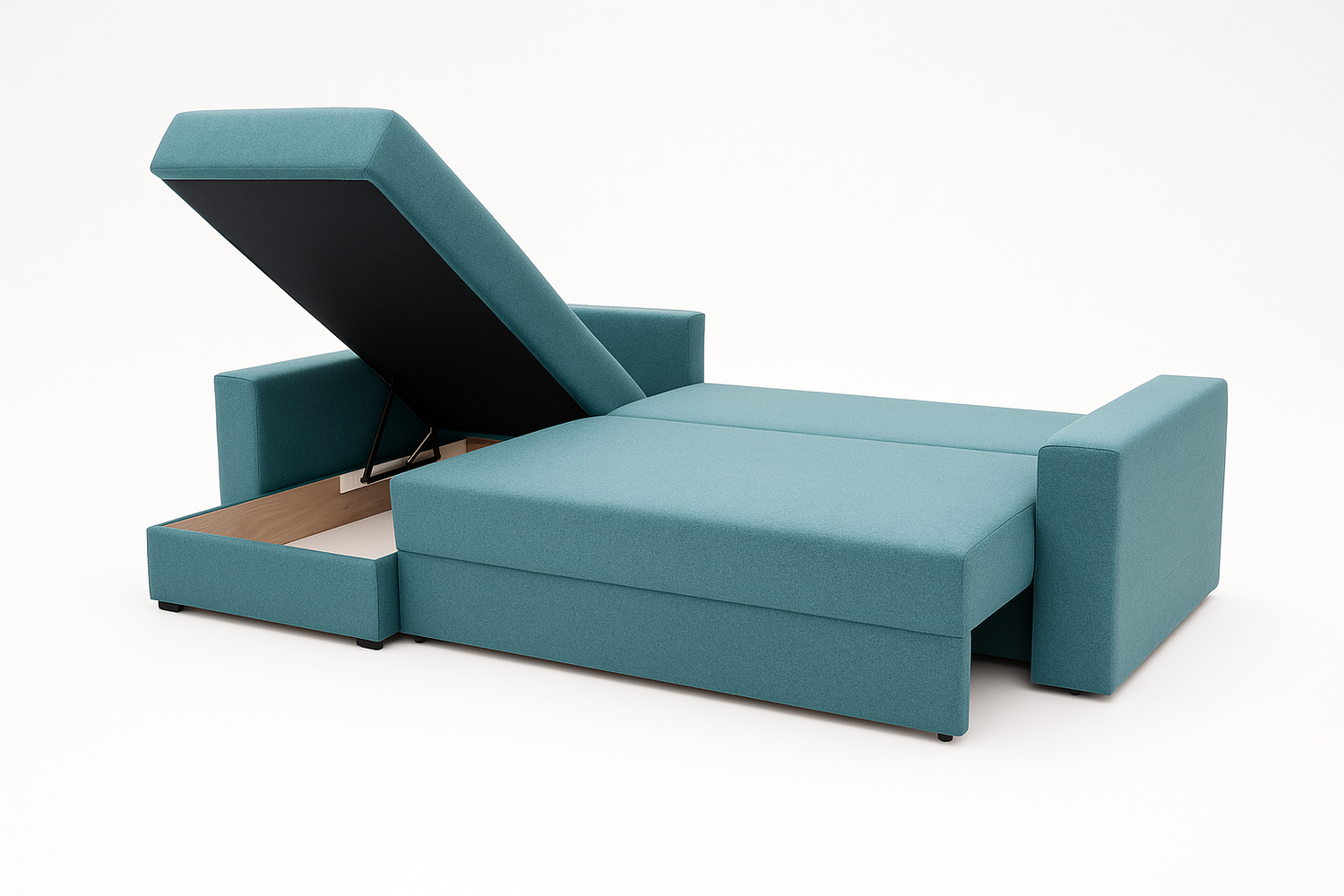 Narożnik wypoczynkowy z funkcją spania to kompaktowe rozwiązanie do salonu, które łączy dzienne miejsce do siedzenia z pełnowymiarową powierzchnią noclegową dla dwóch osób.
