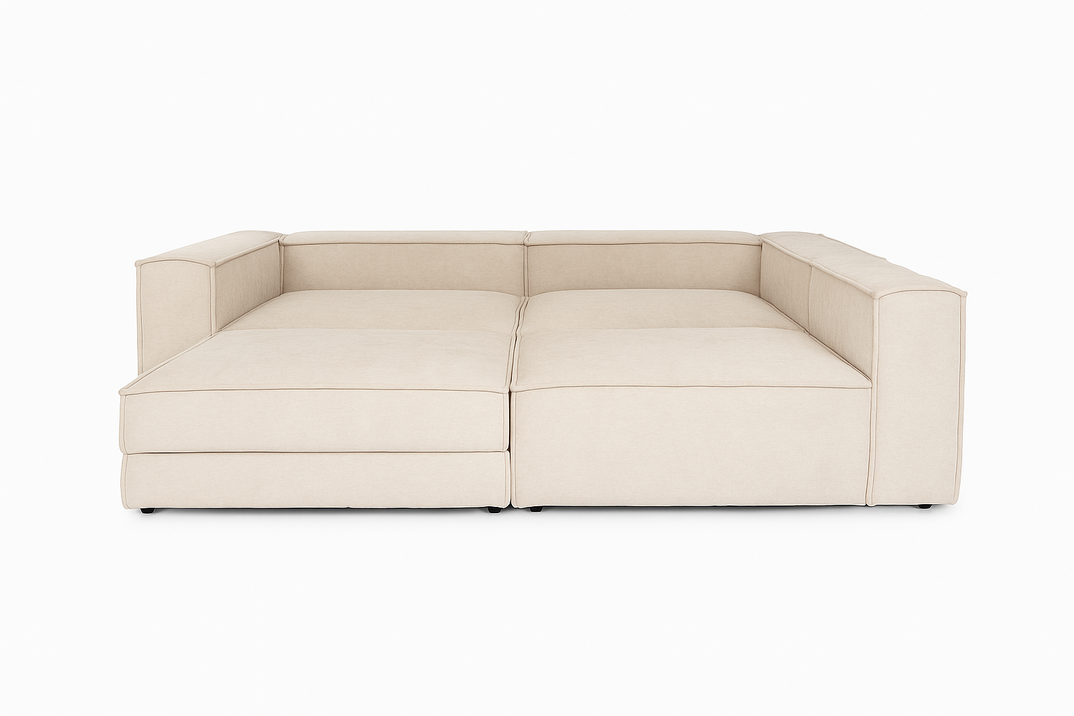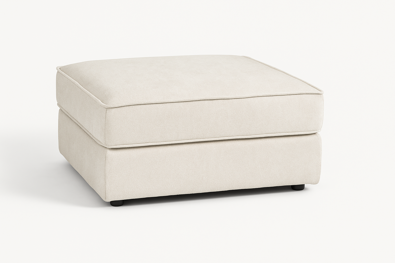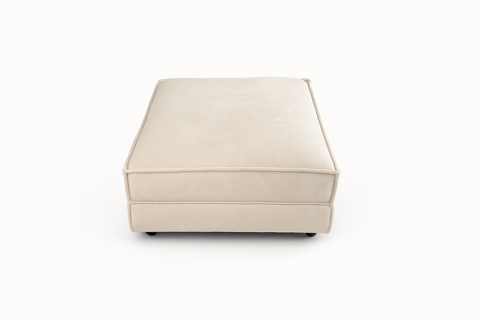 Pufa z zestawu modułowego z pojemnikiem to praktyczny element wypoczynkowy, który może pełnić funkcję podnóżka, dodatkowego siedziska albo przedłużenia sofy.