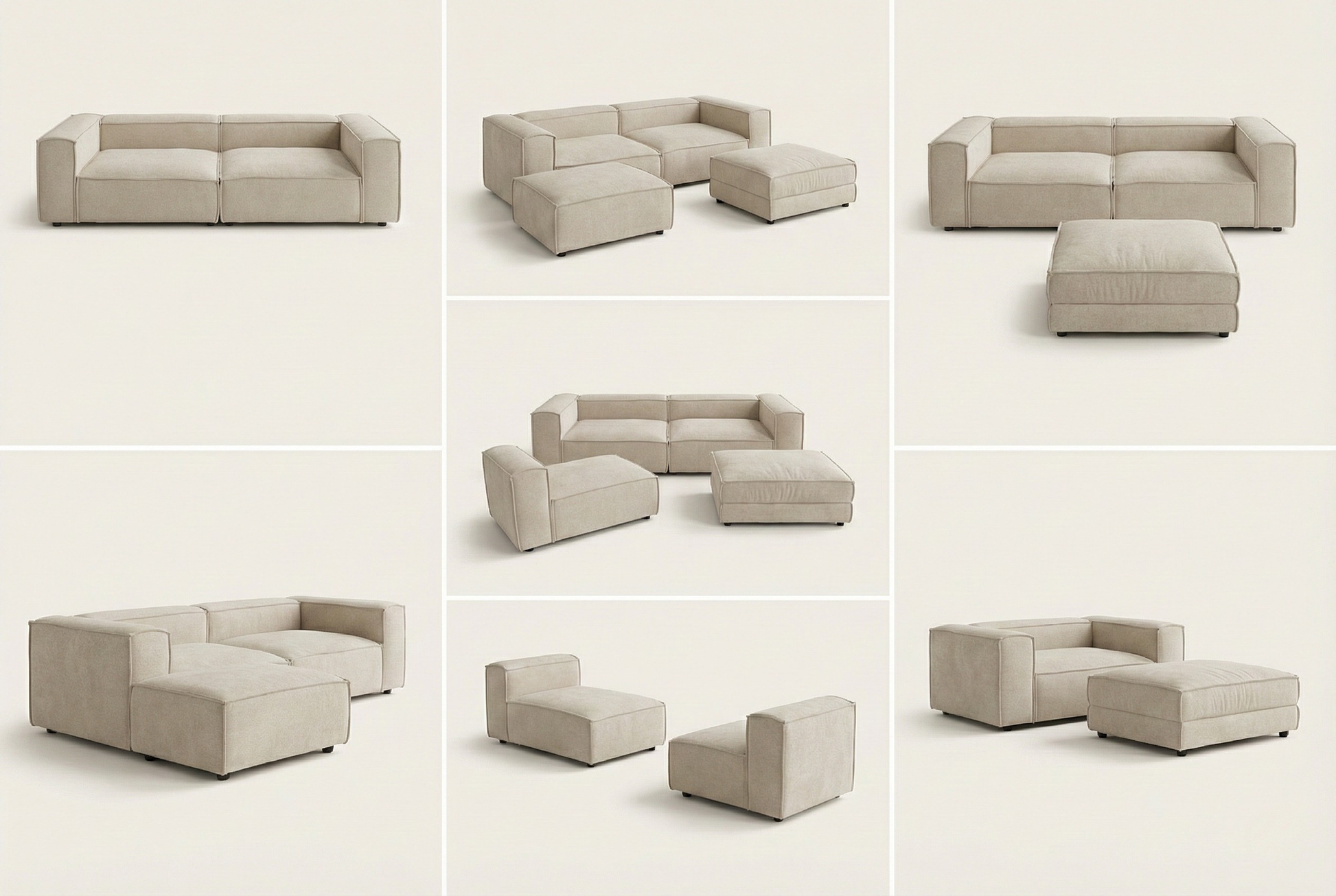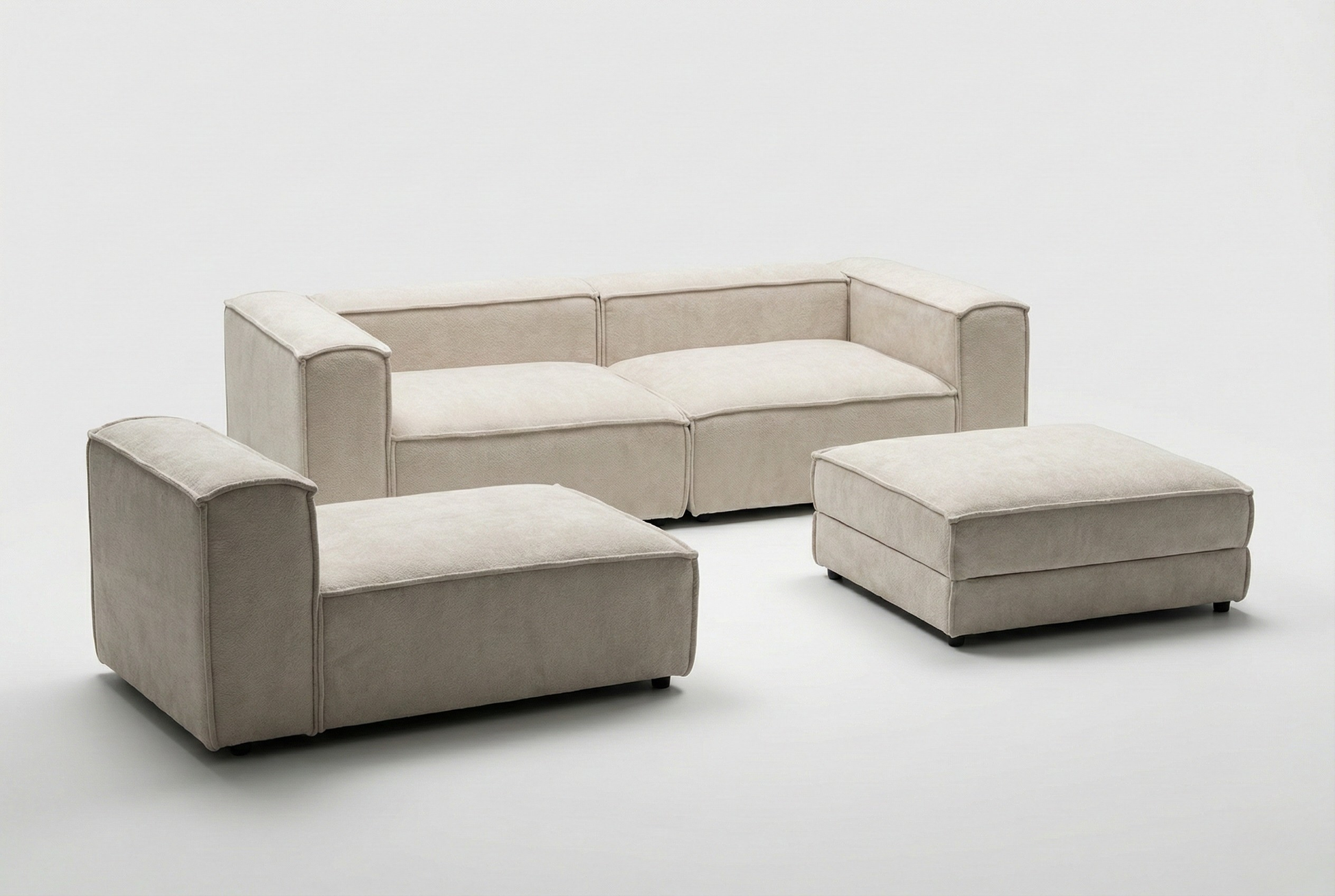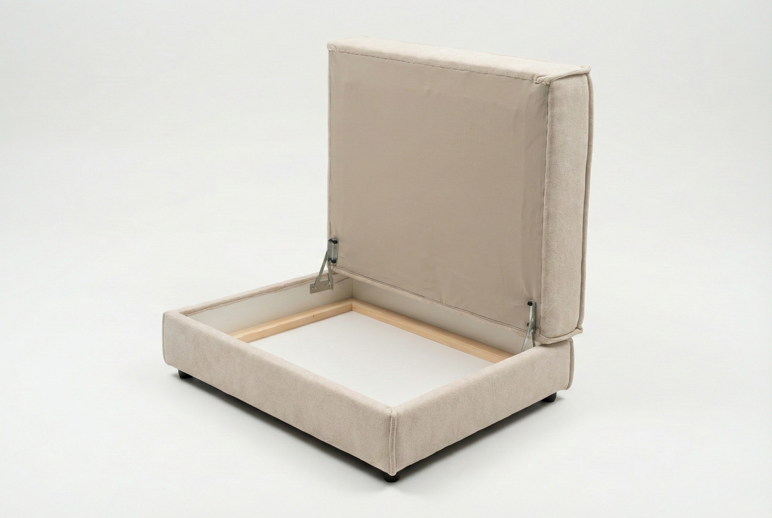 Dzięki niezależnym modułom możesz dowolnie konfigurować układ mebla - od klasycznej sofy, przez przestronny narożnik, aż po oddzielne bryły rozstawione w pomieszczeniu. Praktyczna pufa posiada ukryty, pojemny schowek, idealny na dodatkowe poduszki czy koce. Ponieważ produkujemy meble na zamówienie, możesz dostosować wymiary poszczególnych modułów do swojej przestrzeni i wybrać dowolną tkaninę z naszej bogatej kolekcji.