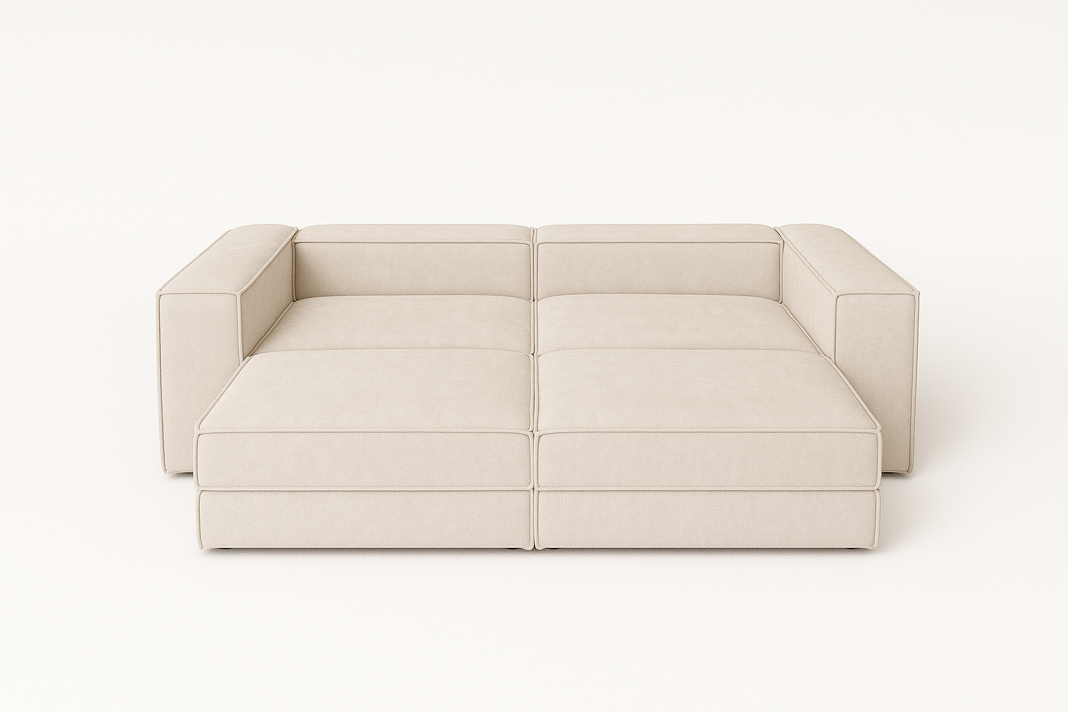 Zestaw modułowy to propozycja dla osób ceniących swobodę aranżacji. Prosta, geometryczna bryła i głębokie, komfortowe siedziska tworzą idealną przestrzeń do relaksu w salonie.